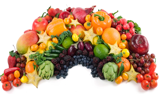 Chế độ dinh dưỡng cân bằng, được gọi "bữa ăn cầu vồng", với sự kết hợp của các loại trái cây, rau củ quả với nhiều màu sắc, giúp kiểm soát cân nặng, bổ sung các vi chất cần thiết.